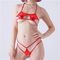 チェリーラブ ストレッチメタリック生地セクシーブラ&ショーツセット レッド レッド