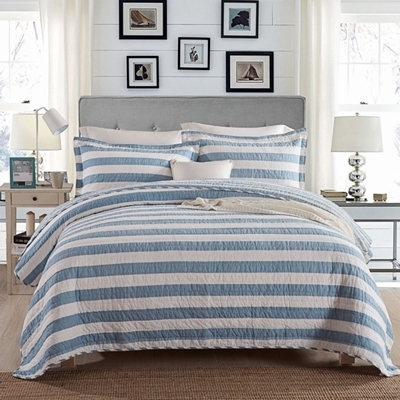 寝具 ボーダー柄デザイン枕カバー付き 3点セット ブルー/ホワイト