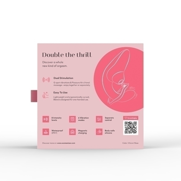 吸引と振動、ダブルの刺激によるオーガズムを「ブレンドオーガズム」と言いますが、このウーマナイザーブレンドはまさにブレンドオーガズム初心者の方にぴったりなアイテムです!●カラー:ヴァイブラントローズ