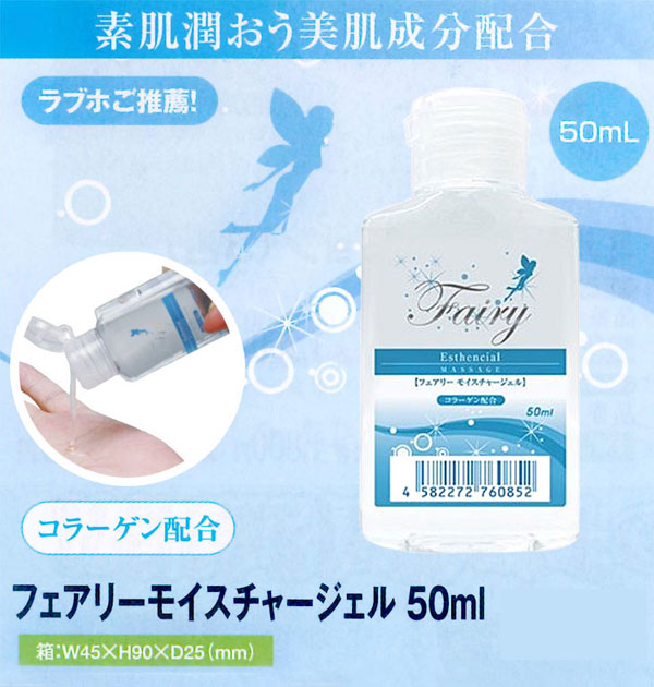 - 仕様パッケージ:9.0×4.5×2.5cm 素肌潤うコラーゲンを配合したお肌にやさしいボディローション「フェアリーモイスチャージェル 50ml」。