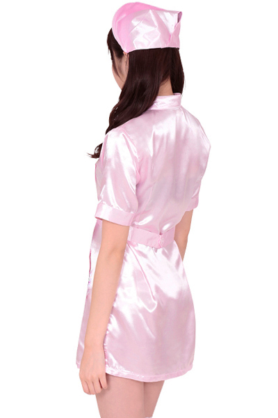 ミニ丈ワンピースのギリギリ感と、清楚なイメージのナース姿のギャップはとっても誘惑的!光沢感のあるキュートなピンクカラーが、セクシーさと可愛らしさの両方を演出してくれます。