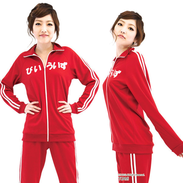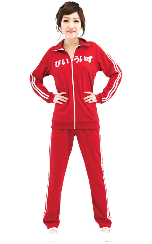 フロントファスナー開きの長袖トップスと、長ズボンがセットになった体操服コスプレです。