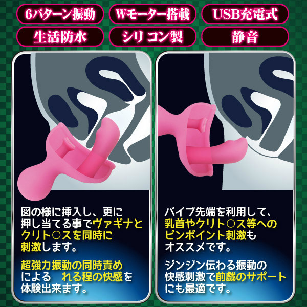 - 仕様パッケージ:21.2×14.2×10.0cm 本体:全長19.0cm 挿入部9.5×3.6φcm 重量:285g USB充電式 Gスポとクリ責めでアクメ到達!ホールドカップ型のUSB充電式バイブレーター。