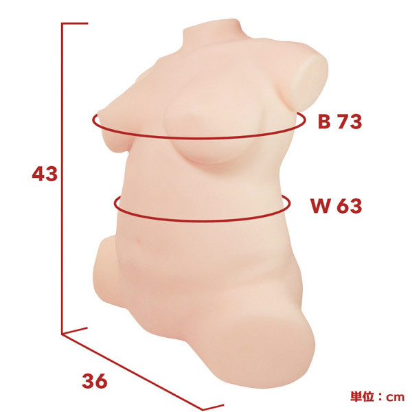 ●持田まゆ・ぽっちゃりver●重量10kgのダイナマイトボディ●全長43cm×最大幅36cm/B73cm・W63cm●トルソー型の2穴タイプ●3Dボーンシステムを採用●骨格パーツを内蔵し様々な体位が可能に●ヴァギナ:ぽっちゃり体型独特のキツキツ挿入口●内部は複雑なヒダイボ構造●アナル:しっかり締め付ける挿入口●高刺激の縦スジ&イボ構造。