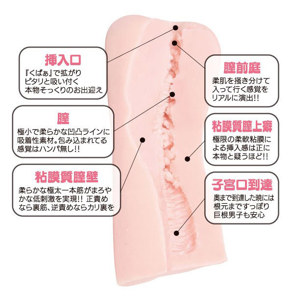 ●女体を思わせるセクシーな曲線●くぱぁでふわっと広がる挿入口●興奮を誘うふっくらモリマン型●やわらか凹凸を掻き分けて進む●裏筋orカリ裏を責める極太ヒダ●ホンモノさながらのねっとり度●スローセックスのような幸福感●最長1m超え!激柔素材使用。