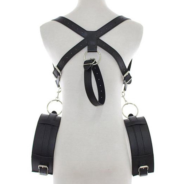 ●ハードな黒のフェイクレザー●合皮、柔らかなウレタン素材●フリーサイズ(太腿39〜69cm)●各ベルトはサイズ調節が可能●目隠し用のアイマスクもセット。