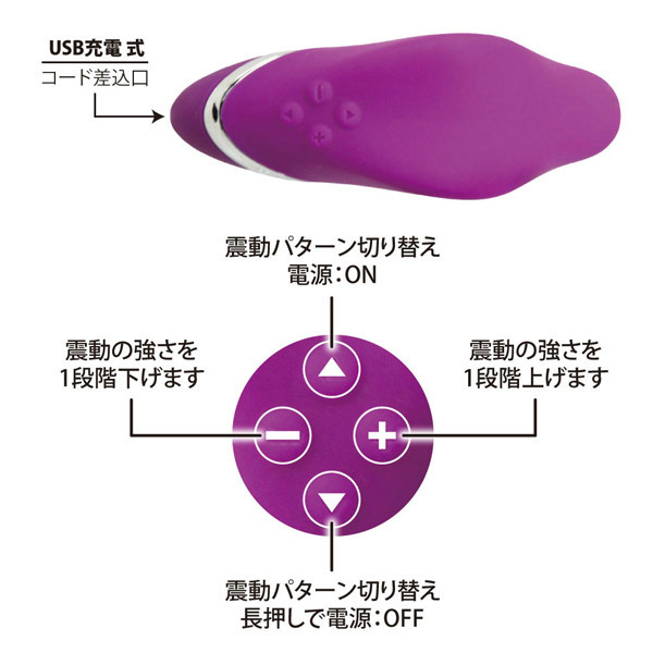 ●安心安全な高品質シリコン素材●柔軟でしなやかなL字型ボディ●一人でも扱いやすいサイズ感●先端まで響く強力振動を搭載●12種の振動パターン&5段階強弱●クリトリスをピンポイント刺激●USB充電式(専用コード付属)。
