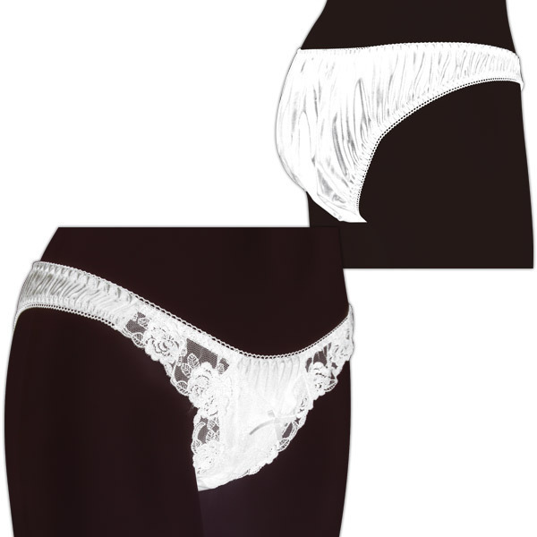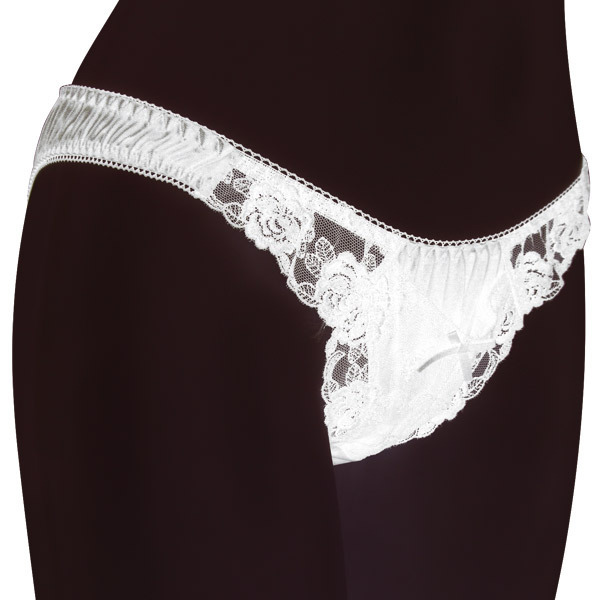 ●ホワイトカラーの光沢フェリカ生地●前サイドは透け素材のバラ柄レース●ミニマム生地のデルタゾーン●フラワーレースの大きめポケット●ゆったりフルバックデザイン●レディース3Lサイズ・日本製。