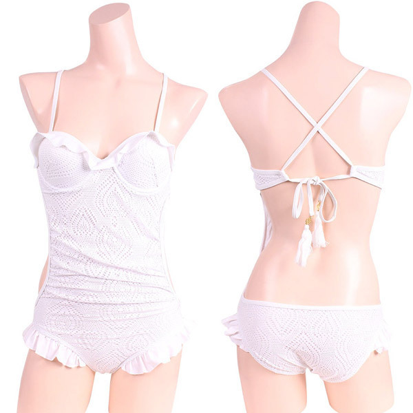 - 仕様Mサイズ B78〜88cm・W58〜70cm・H87〜95cm 透け感:なしワイヤー:あり裏地:ありパッド追加:不可パッド取り外し:不可 純白のビーチで周りと差をつける、本格スイムウェアシリーズ♪フェミニンなストレッチレースの重ねた2枚仕立てのワンピース。