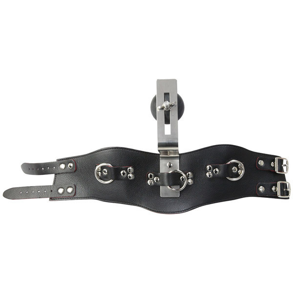 首にガッチリ固定された大型のボールギャグで口の自由を奪い、流れ出るよだれが羞恥心を更に煽ります。