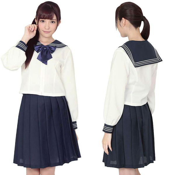 ミドル丈のスカートにはプリーツがたくさん入っていて、正統派の学校制服となっていますが、着用もしやすくホワイトと紺のカラーにより清潔感と清楚さもあわせ持っています!イベント用としてはもちろん、学生気分に浸りたいときにもオススメです。