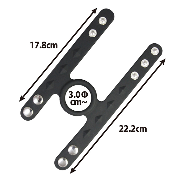 - 仕様パッケージ:12.8×10.0×5.0cm 本体:リング内径3.0cm・根元用ベルト全長17.8cm・根元用ベルト全長22.2cm 幅広なベルトで玉袋と根本を同時に締め付け、そのままリングが竿の付け根部分を締め付けることで、男性機能アップをサポートしてくれるスナップボタン式のコックリングです。