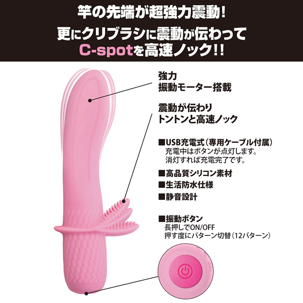 - 仕様パッケージ:17.5×9.0×4.5cm 本体:15.2×3.0cm USB充電式 太さ最大3cmのぽっこりヘッドがGスポを直撃!内蔵されたモーターから伝わる強力振動で、細かな突起のついたブラシがクリトリスを高速で叩く♪ピンポイントで同時刺激することで「アッ」という間に絶頂快感へといざなうパステルピンクの可愛らしいUSB充電式バイブレーターです。