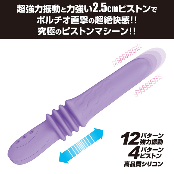 - 仕様パッケージ:27.0×11.7×5.3cm 本体:25.5×3.6cm USB充電式 強烈振動と約2.5cmのピストンでポルチオを突きまくる!12パターン振動×4パターンのピストン運動を搭載したストレートバイブ。