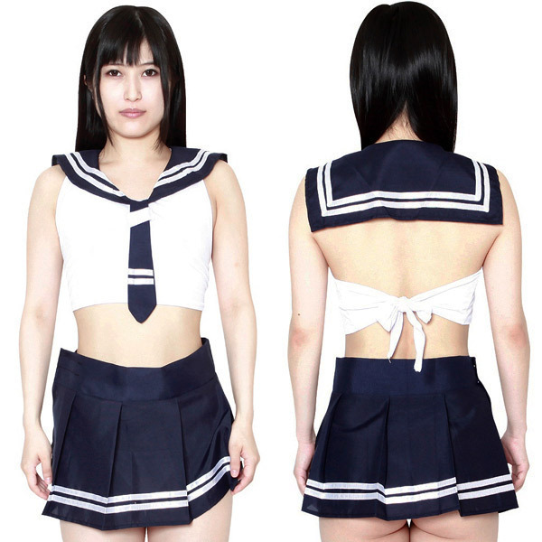 - 仕様Mサイズ:B78〜88cm・W58〜70cm・H87〜95cm パッケージ:31.0×21.5×2.5cm セット内容:ストレッチトップス、スカート 素材:ナイロン90%、ポリウレタン10%(スカート:ポリエステル100%) ネイビー×白の定番セーラー服を色気たっぷりに仕上げた、後ろ結びミニ丈トップスとマイクロ丈プリーツスカートの2点セット!セーラー服特有の大きな襟と、ボックスプリーツスカート、そして紺色のネクタイには太目の白ラインを2本施しています。