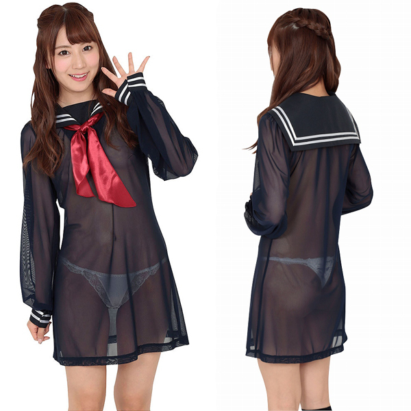 夜を盛り上げる透け感たっぷりなセーラー風のミニスカワンピで大胆セクシーにアピールします♪