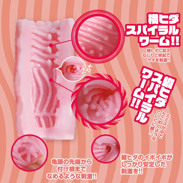 - 仕様パッケージ:18.0×12.0×6.0cm 本体:13.8×5.5cm 重量:250g 日本製 先端から根元まで、螺旋を描くように捻じれたスパイラルワーム構造が絡み付く!プニッと柔らか質感の非貫通オナホ(日本製)。