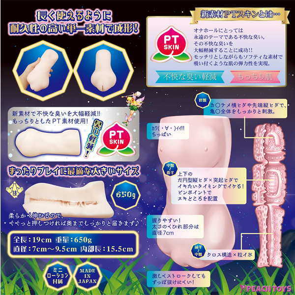 - 仕様非貫通型 パッケージ:21.3×17.2×11.1cm 本体:19.0×9.5×9.0cm 重量:650g 柔らかなヒダに600粒のイボイボがびっしりと絡みつき奥は迷宮のように複雑でベローンとした高さのあるヒダヒダが待ち受けます!もっちりとしながらもソフティな素材感で吸い付くような肌の弾力を実現。