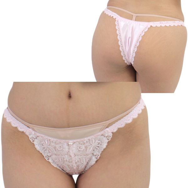 光沢ストレッチレース刺繍ハーフバック (ピンク)