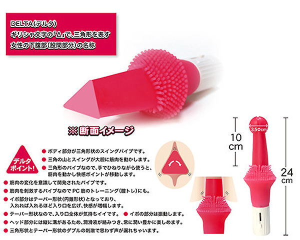 - 仕様パッケージ:26.0×11.1×7.0cm 本体:24.0×3.0〜6.7cm 角ばった三角形状が与える至極の快感!世界初の新発想「デルタバイブ」(電池式)。