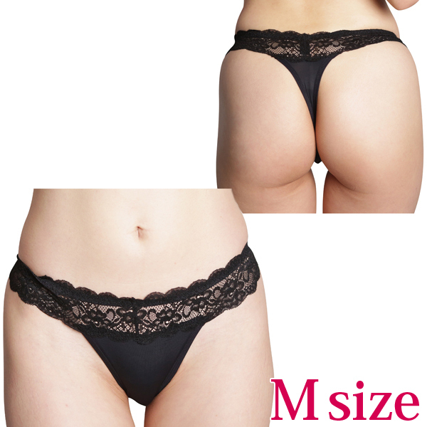 ウエスト周りに繊細なエレガントレースを施した黒の上品なTバック。
