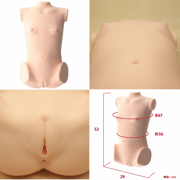 - 仕様非貫通型 パッケージ:57.5×42.0×25.0cm 本体:全長52.0×全幅29.0cm 未発達な寸胴ボディを細部まで再現した「ちっぱい皐月もも」は総重量10.5kgの非貫通式据え置き型オナホです。
