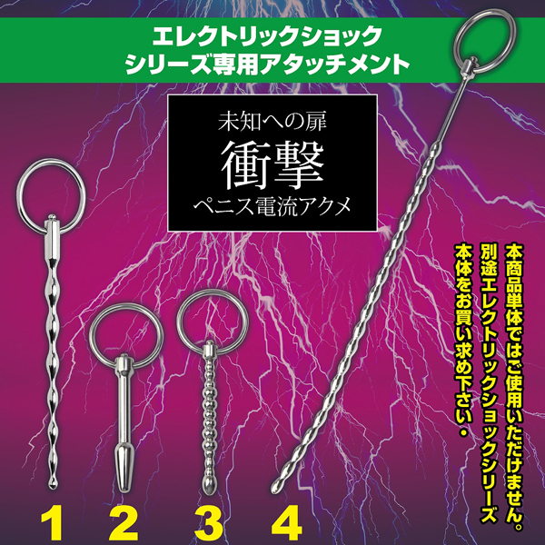 - 仕様パッケージ:33.5×8.5×2.2cm 本体(リング含まず):24.9×0.6cm 凹凸刺激×電気ショックの尿道責めで未知への扉を開く!エレクトロ系グッズ、エレクトリックショックシリーズ専用ブジーアタッチメント。