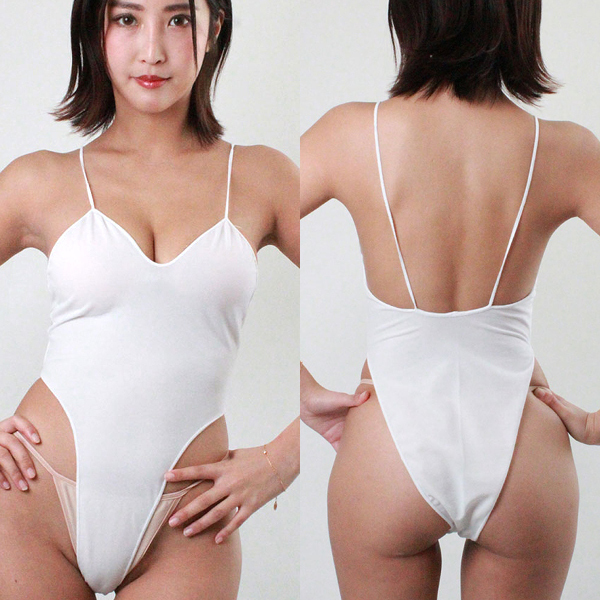 フロント部分は局部のカットがキワドイラインで入っていて、ボディにぴったりとフィットする素材感もプラスして大胆さは抜群!清潔感たっぷりのホワイトカワーにヒップの曲線、局部のきわどさ、タイトな着心地で他にはないギャップを演出してくれます♪いつもと違うプレイをしたいときや彼氏を誘惑したいときにもおすすめですし、大胆に色気を出したいときにも大活躍です。