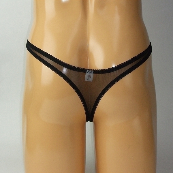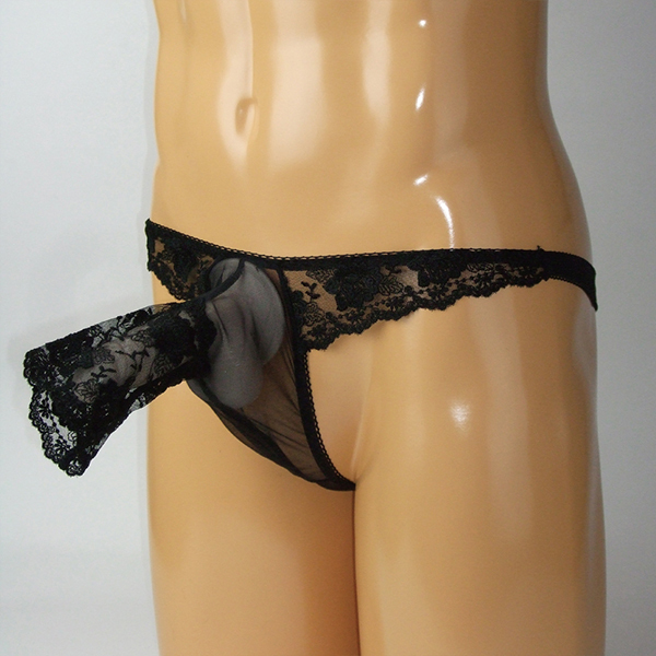 メンズ スケスケシースルー素材のセクシーな生地にレース付きぞうさん貫通型TB ブラック