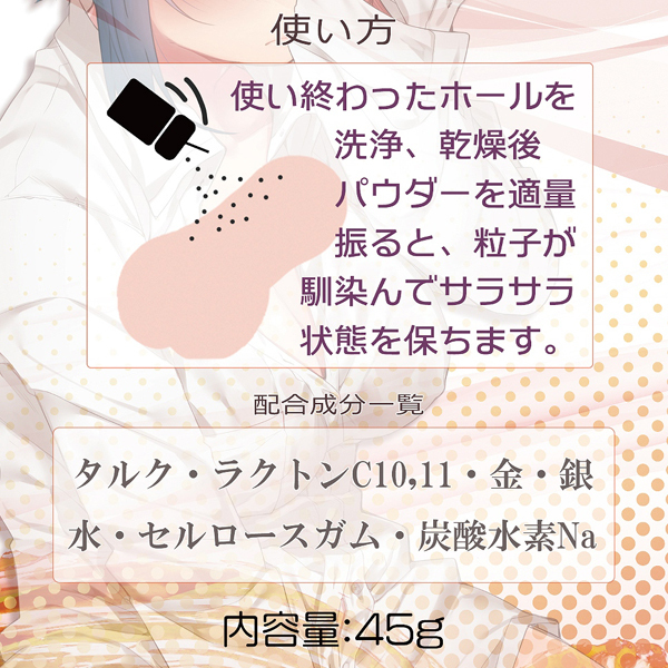 - 仕様パッケージ:10.5×4.8×4.8cm 振りかければ自分のオナホールが全てオンナノコの匂いになる魔法の粉?!オナホ用パウダーは使用後のオナホを洗浄乾燥してべたつきが無くなる程度に振りかけて下さい。