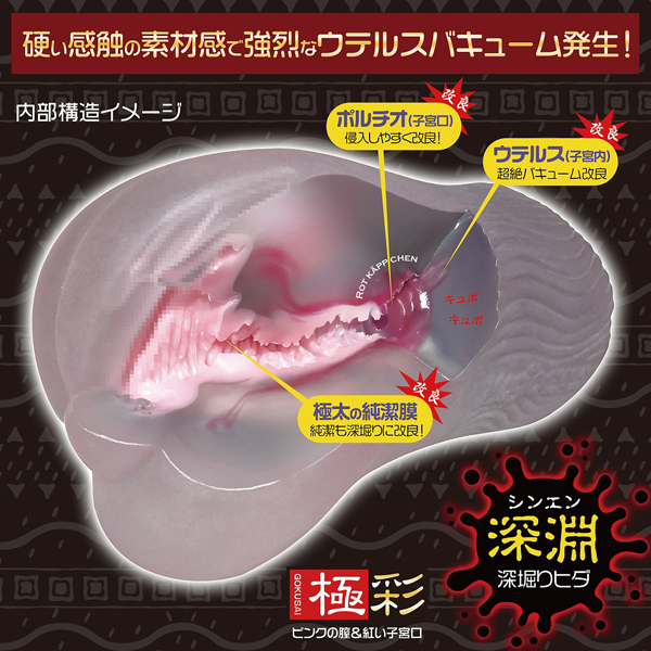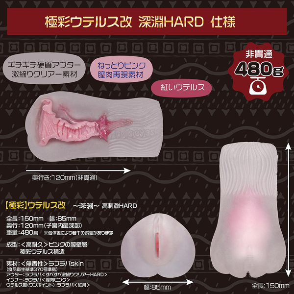 - 仕様パッケージ:22.0×14.0×7.7cm 本体:15.0×8.5cm・内部長12.0cm 重量:480g 全面改良された膣内構造で転生する、極彩ウテルス改深淵高刺激ハード。