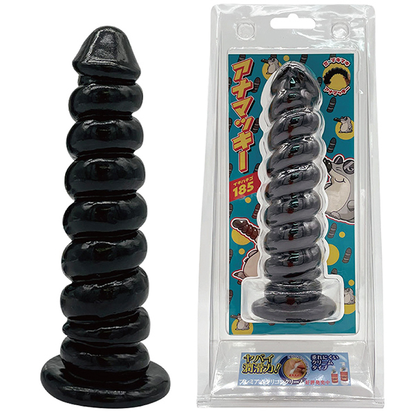 - 仕様パッケージ:28.0×12.0×7.0cm 本体:全長18.5cm・挿入部17.5×3.5〜4.5cm・土台直径6.5cm 見た目が特徴的なツイスト形状のアナルディルド「アナマッキー185(イチハチゴ)」。