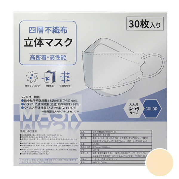 - 仕様パッケージ:22.2×22.0×2.8cm 風邪・花粉・ウイルス対策に♪四層不織布立体マスク(ハニー)の30枚入りです!大人用の普通サイズで高性能四層不織布立体マスク!微小粒子飛沫捕集率(ろ過)効果(PFE)99%。