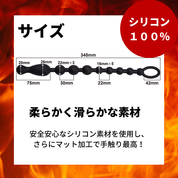 - 仕様パッケージ:5.0×35.0×3.5cm 本体:全長34.0×幅1.6〜2.6cm アナルにぬぷぬぷとインしながらズリュっと引き抜く!100%ピュアシリコンで安心安全な10個のビーズが連なった取っ手付きのアナルビーズです。