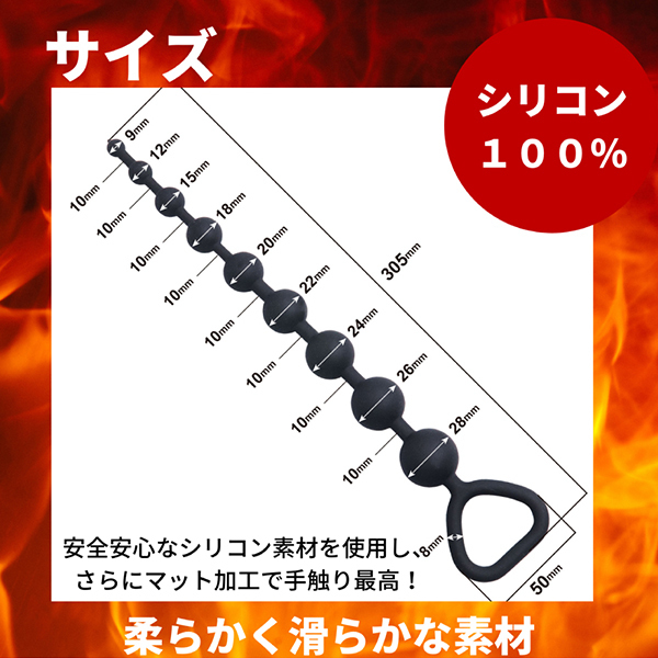 - 仕様パッケージ:5.0×35.0×3.5cm 本体:全長30.5×幅0.9×2.8cm アナルにぬぷっとインしてズリュっと抜く!持ち手リング付きでハンドリングしやすい取っ手付きのアナルビーズです♪こちらのベータは9連ビーズで徐々にビーズ径が大きくなるタイプです。