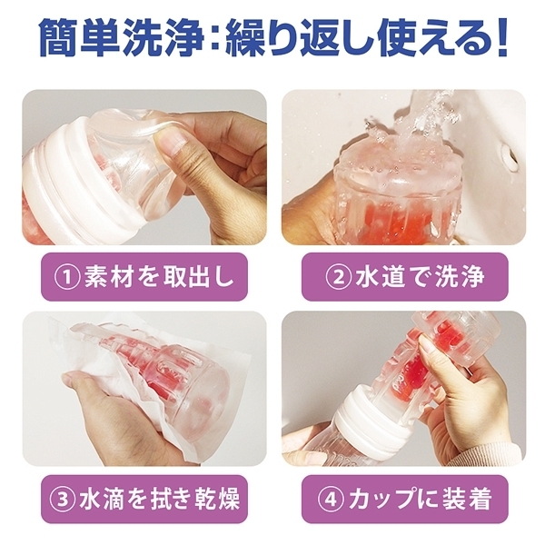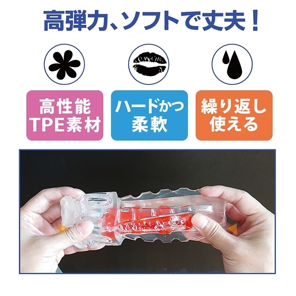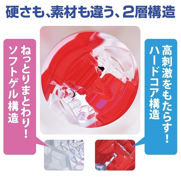 内部構造が違う3タイプからチョイスできるカップホールでこちらはハードな刺激タイプとなっています♪挿入すると前半からブロックヒダや最奥の突起部分が先端の尿道をハードに刺激!ハードな素材を採用しているのでギミックをしっかりと感じられるのが特徴です。