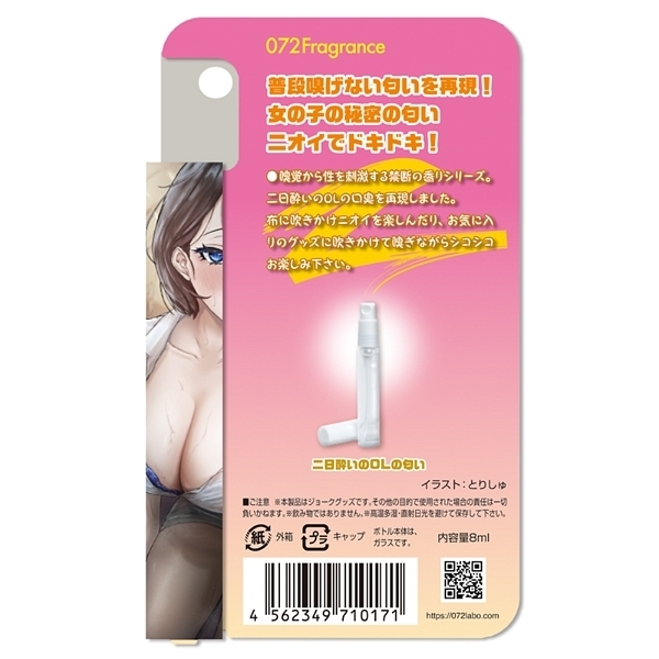 - 仕様パッケージ:14.1×8.5×1.7cm 嗅覚から性を刺激する禁断の香りシリーズから「新人の女の子の二日酔いの朝イチの口臭」がするエッチなニオイのフレグランスが登場しました♪二日酔いOLの口臭の匂いを再現!布に吹きかけて脇の匂いを楽しんだり、お気に入りのグッズに吹きかけて嗅ぎながらシコシコお楽しみ下さい。