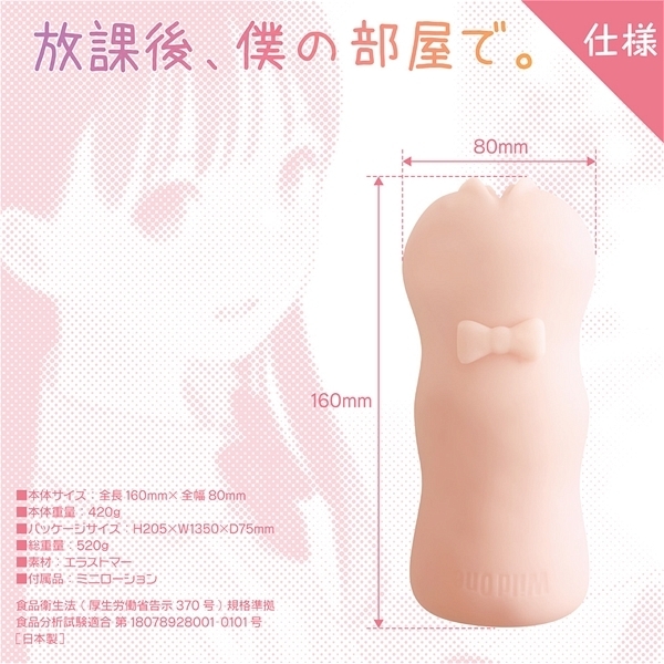 - 仕様非貫通型 パッケージ:20.5×13.5×7.5cm 本体:16.0×8.0cm 重量:420g 大人気イラストレーター<国道12号>先生が描く、クラスメイトとの甘酸っぱいアフタースクール!ボテヒダ×イボ突起×横ヒダの快感至上主義構造!憧れのあの子と、放課後デートからのまったりSEX。