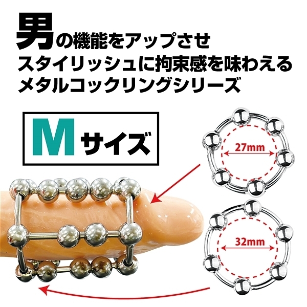 - 仕様パッケージ:19.0×11.4cm 本体:全長5.6cm・リング内径(小2.7〜3.5cm・大3.2〜4.1cm) 重量:111g 男の機能をアップさせスタイリッシュに拘束感を味わえるメタルコックリングシリーズ!中間に配置された2個と3個のメタルボールが、動く度に、上下へスライド。