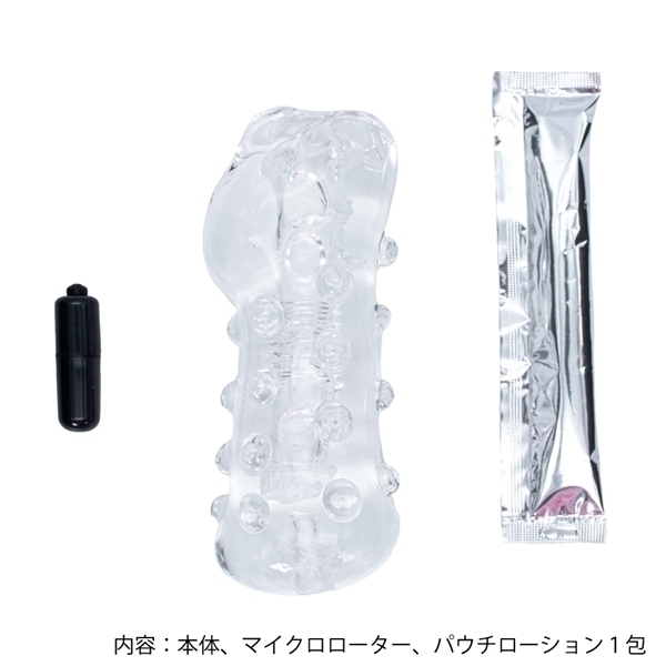 - 仕様非貫通型 パッケージ:16.0×10.0×6.0cm 本体:14.0×5.0cm 重量:155g 快感・尿道タッチ!ハードな高弾力!入り口から大ぶりなイボがゴリゴリ刺激!中盤に細かい三角溝がゾリゾリと竿を撫で回す!そして奥はプチっと突起が尿道に優しくタッチ!最奥ポケットに付属のローターを差し込み亀頭に高刺激振動で更に快感増!!!