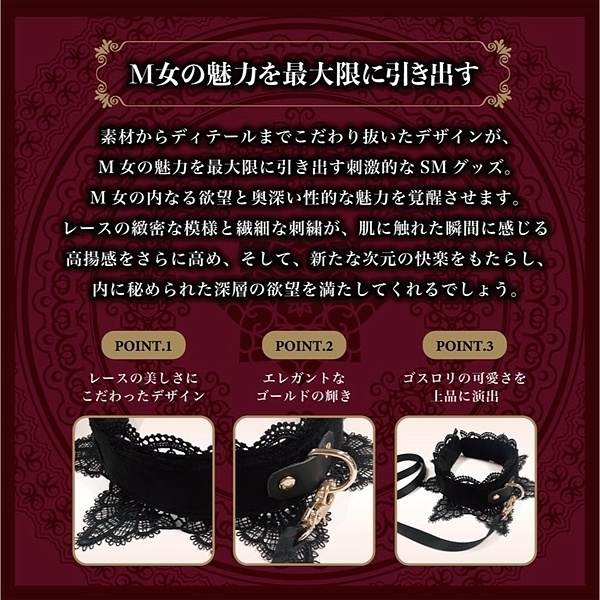 高級感あるベロア生地とレースで飾りつけた心の奥のM願望を刺激してください。