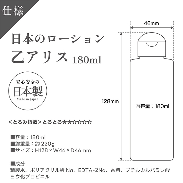 - 仕様ボトル:15.0×4.6×4.6cm 金髪ギャル系AV女優<乙アリス>のエロス液を、質感から糸引きまでリアルに再現!「日本の名器」をはじめ各種グッズとのシンクロ性が抜群!<乙アリス>のとめどなくあふれる愛液を収録現場でリサーチし、色や質感、匂いまでもローションに反映。
