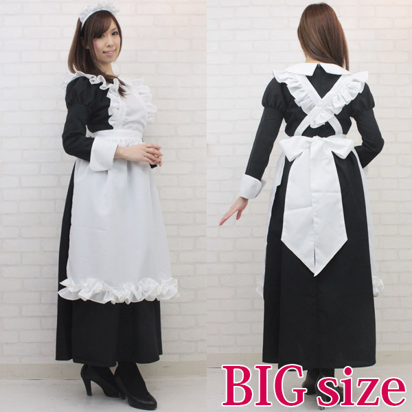 - 仕様BIGサイズ:B92〜103cm・W70〜90cm 丈:ワンピース130cm(肩幅40cm、袖丈57cm)、エプロン115cm セット内容:ワンピース(首周りホック有り、後ろファスナー)・エプロン(2段階長さ調節ボタンあり)・カチューシャ ここまでのロングはなかなかない!正統派メイドコスチューム。