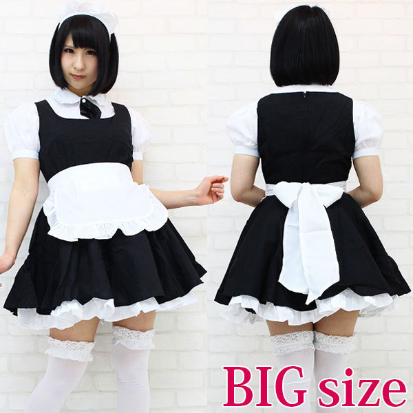 - 仕様BIGサイズ:B〜104cm・W〜86cm 丈:ワンピース83cm(裾フリル含む)・ブラウス63cm(袖丈25cm、袖幅35cm、肩幅47cm、首周り43cm) セット内容:ブラウス、タイ(ナップボタンにて取り外し可能)、ワンピース(背中ファスナー)、エプロン、カチューシャ 都会派萌えスタイルが可愛い!定番の黒で高級感溢れる、しっかりとした作りのメイドコスチューム(BIGサイズ)。