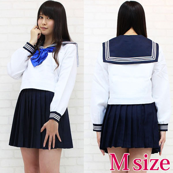 - 仕様Mサイズ:B〜98cm・W〜72cm 丈:上着45cm(肩幅40cm、袖丈56cm)・スカート41cm セット内容:上着(サイドファスナー付き)・スカート(アジャスター調節可)・リボン 青いリボンが爽やか!春・秋仕様のキュートなセーラー服コスプレ。