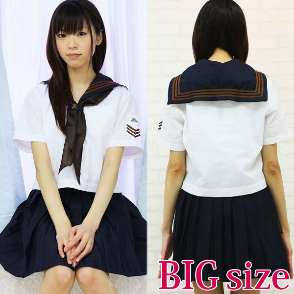 - 仕様BIGサイズ:B88〜110cm・W〜86cm 丈:上着55cm(袖丈60cm)・スカート48cm セット内容:上着(横ファスナー、胸元ボタン留め、胸ポケットあり)・スカート(横ファスナー、アジャスター有り)・スカーフ 半袖部分のワッペンがポイント!憧れのお嬢様系セーラー服コスプレ。