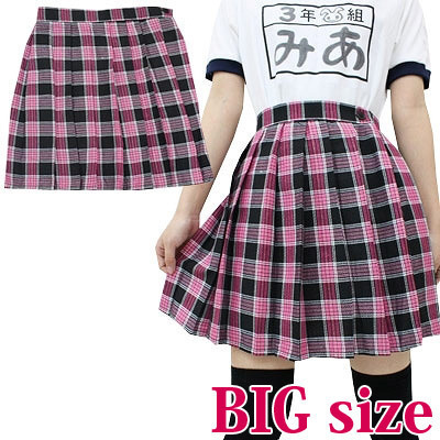 - 仕様BIGサイズ:W72〜84cm 丈:スカート45cm セット内容:スカート(横ファスナー、ボタン留め、ウェスト一部ゴム入り) 制服コスプレの定番アイテム!ピンクラメのチェック柄プリーツスカート。