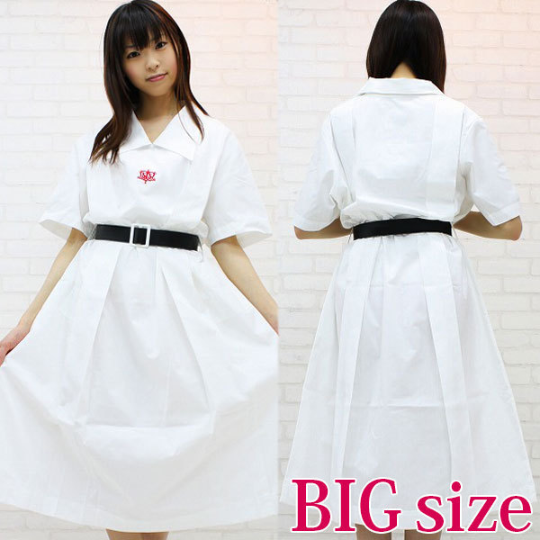 - 仕様BIGサイズ:B88〜120cm・W76〜100cm 丈:ワンピース112cm(袖丈25cm、肩幅46cm)・ベルト108cm セット内容:ワンピース(スナップボタンにて着脱)・ベルト 真っ白なワンピースがとっても清楚!夏服仕様の制服コスプレ衣装。