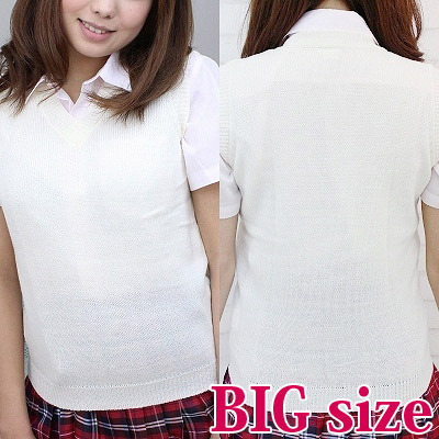 - 仕様BIGサイズ:B90〜130cm 丈:ベスト63cm セット内容:ベスト 制服コスプレと相性抜群!オールシーズンOKな白無地ニットベスト単品(BIG)。