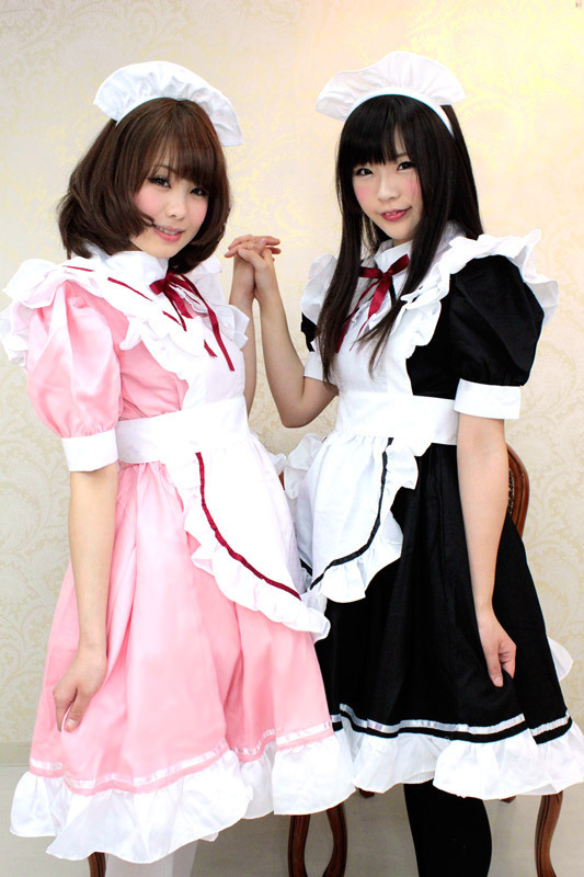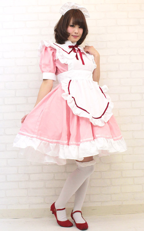 ふわりと広がるスカートの裾にフリルをプラス!パフスリーブで更に愛らしく、エプロンの肩口も大胆なフリルでふんわりと。